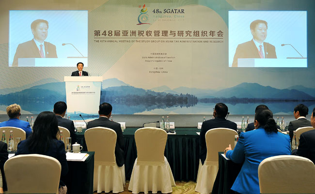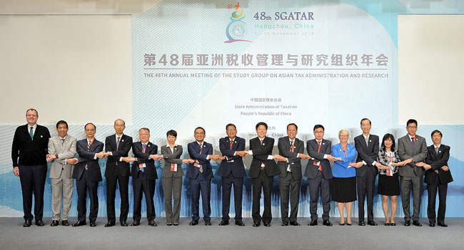 11月13日,第48届亚洲税收管理与研究组织(SGATAR)年会在杭州开幕。这是继1998年、2008年之后,中国第三次主办SGATAR年会,本次会议共有16个SGATAR成员的税务局长、3个永久观察员和其他特邀观察员,共计约150人参加。会议旨在加强各成员税务部门在国际税收领域的对话和合作,围绕“税收服务‘一带一路’”“改善税收营商环境”“加强税收征管能力建设”等议题展开讨论。