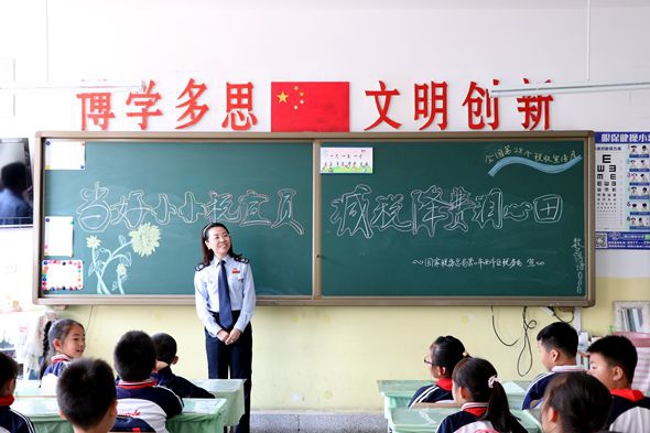 为进一步增强减税降费宣传力度,增强税法宣传的有效性和针对性,营口市西市区税务局围绕“落实减税降费,促进经济高质量发展”全国第28个税收宣传月主题积极开展宣传活动。5月10日上午,营口市西市区税务局减税降费政策宣传小队走进营口市建设小学家长课堂为师生及家长送上一堂生动的税法课,将税收的基础知识和减税降费的最新政策以通俗易懂的方式送入孩子们的心中。