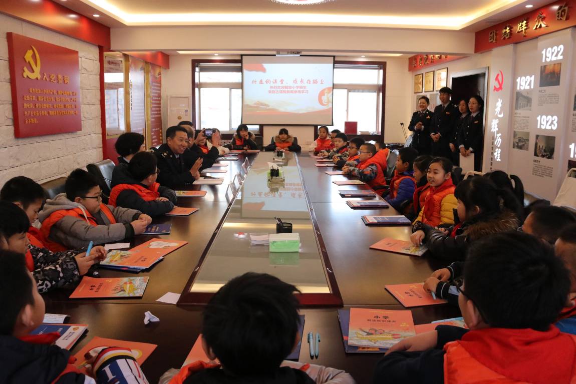 随后同学们来到会议室,区局党委书记、局长王劭民亲自给同学们上了一堂生动的税法知识宣传课。王局长以锦州市税务系统最美税务人:第一税务所所长(办税服务厅主任)王冬梅三十年如一日坚守税收岗位,带领办税服务厅团队荣获“全国税务系统先进集体”荣誉称号的生动事例,向同学们阐释了敬业、专业、乐业的“三业精神”,又通过寓教于乐的形式与小朋友们探讨税收业务,传递税收知识。课程在同学们齐唱“小小税法宣传员之歌”中圆满结束。