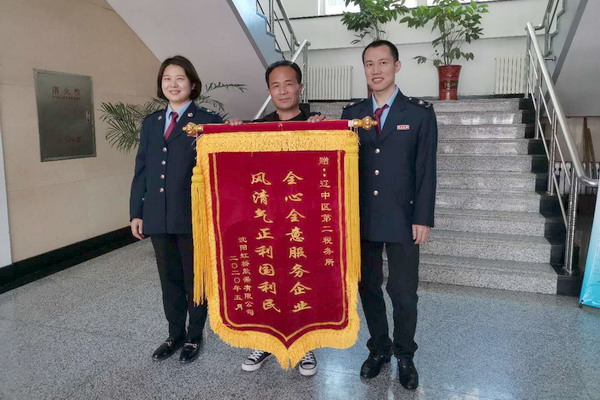 近日,沈阳市辽中区税务局第二税务所收到了沈阳虹桥胶带有限公司送来印有“全心全意服务企业风清气正利国利民”的锦旗。