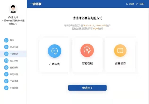 平台支持税企双方通过“共享桌面”功能完成涉税业务的隔空辅导,高效解决纳税人、特别是异地纳税人在电子税务局操作环节中遇到的普遍性问题,充分辅助企业事项网上办、个人事项掌上办,有效拓展了“非必要不窗口”涉税事项的受众范围。下一步,本溪市税务部门还将拓展平台功能,增加涉税风险提醒、税源管理等模块,让平台成为智慧税务的亮点,税企畅联的载体,征纳互动的典范。