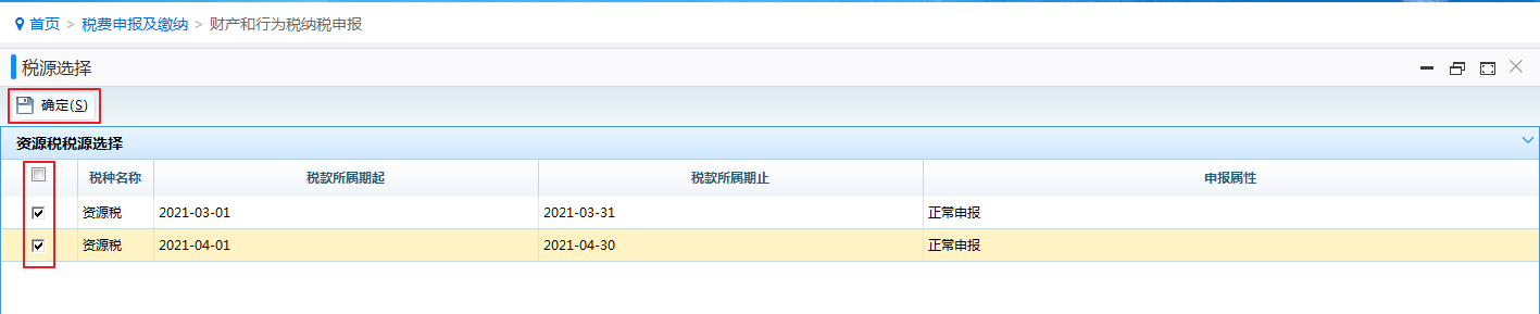 勾选需要申报的税源信息,点击“确定”按钮,系统跳转申报主界面。
