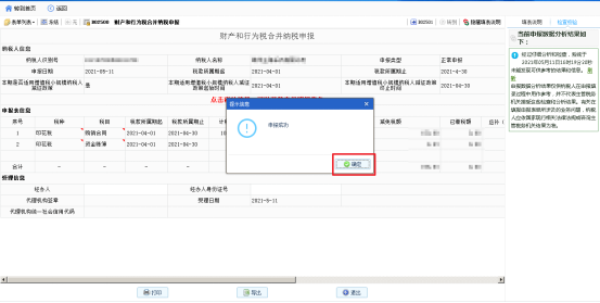 5.确认申报数据无误后,点击【保存】、【检查】、【申报】完成财产和行为税合并纳税申报申报更正。