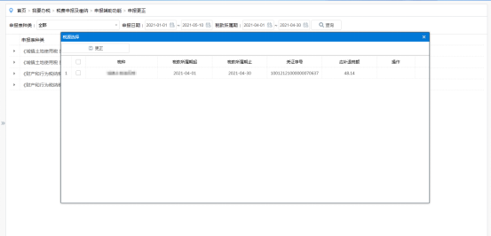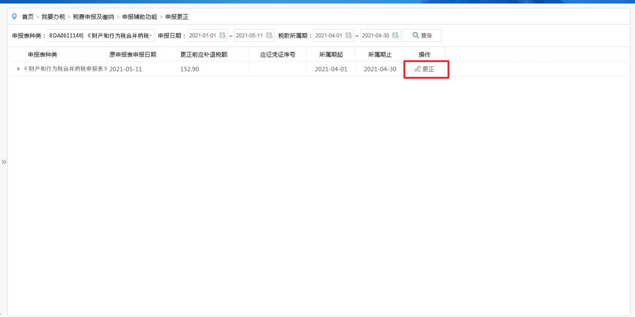 3.选择需要更正的申报表,点击【更正】进入税源选择页面。