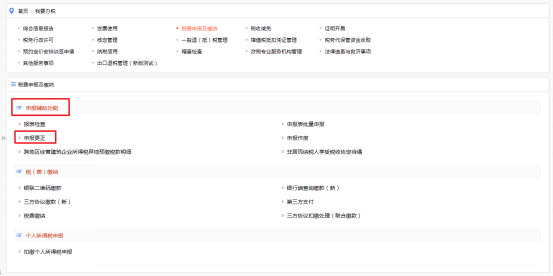 1.登录【电子税务局】—【我要办税】—【税费申报及缴纳】—【申报辅助功能】—【申报更正】。