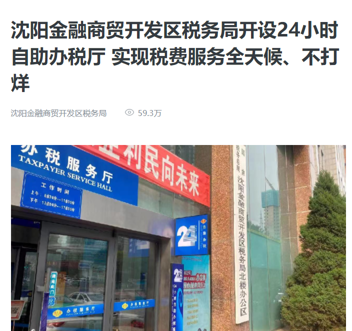 近日,沈阳金融商贸开发区税务局围绕“智慧税务”建设持续优化服务、创新举措,开设24小时自助办税服务厅,实现税费服务全天候、不打烊。