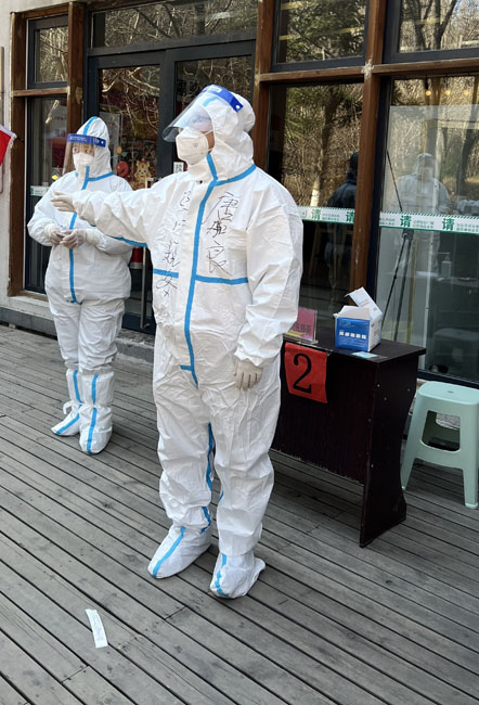4月5日早上5点50分,沈阳市高新区税务局老党员李勇同税务志愿者们来到浑南区的一个小区,穿上防护服,戴上护目镜、口罩、手套、脚套,全身包裹得严严实实,开始一天的志愿者工作。