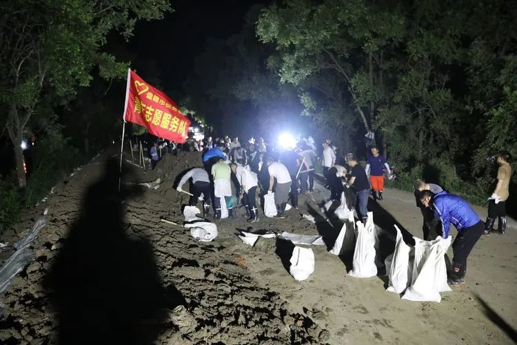 近300名干部放下刚端起的饭碗,撇下刚接回家的孩子,在一个小时内迅速集结组建党员突击队和青年突击队,奔赴抢险一线,甚至有没赶上车的干部直接骑自行车赶到大堤。