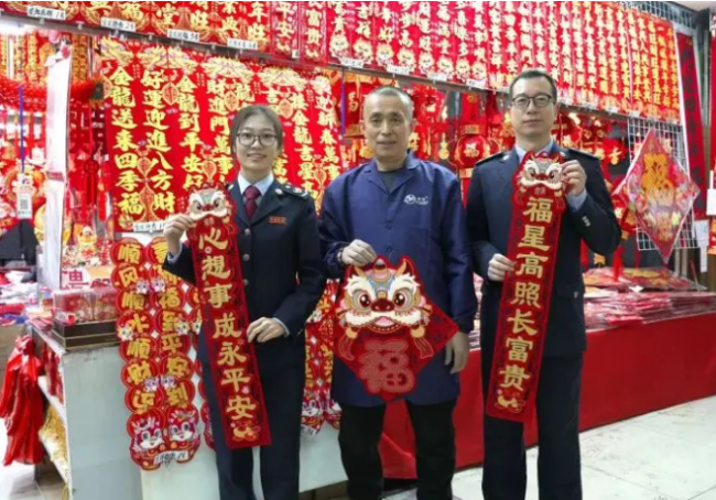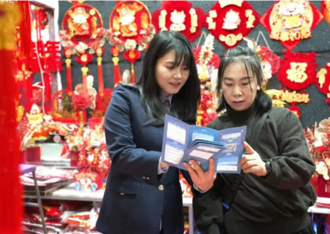 新年将至,处处洋溢着节日的气息,“年经济”也逐渐呈现出购销两旺的火热景象。在新兴市场内,春节对联、大红灯笼、龙年饰品等年货琳琅满目,前来选购的市民络绎不绝。铁东区税务局的税务干部带着税费政策来到这里,就如何用手机进行个税附加扣除填报、社保费缴纳等方面内容对商户进行手把手辅导,以细心的税费辅导与暖心的关心关怀助燃“人间烟火气”。