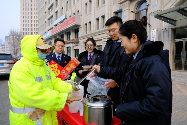 为了表达对环卫工作者的感谢和敬意,国家税务总局锦州高新技术产业开发区税务局组织开展“浓情腊八 ‘粥’到暖心”志愿服务活动,为环卫工作者送上一碗碗热气腾腾的腊八粥,将感谢之情和新年的祝福都化成一丝丝香甜送到他们手上,让他们在最寒冷的冬季感受到最诚挚的温情。