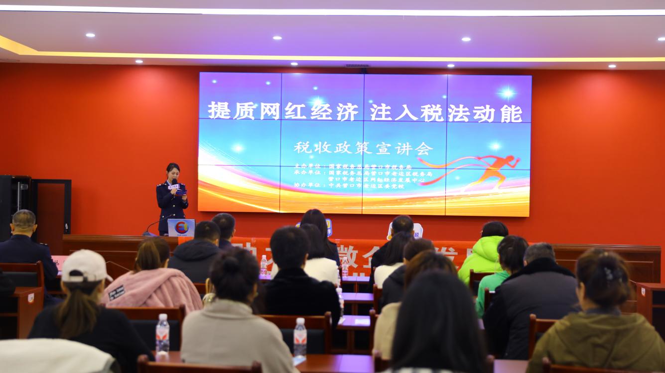 11月25日,营口市税务局以“提质网红经济 注入税法动能”为主题开展税收政策宣讲会,旨在进一步加强网络红人和直播企业的税务合规意识,发挥网红经济资源优势,促进网红经济健康发展。50余位网络红人和直播企业代表参加此次宣讲会,现场气氛热烈,营口市老边区网红经济发展中心有关人员参加此次活动。