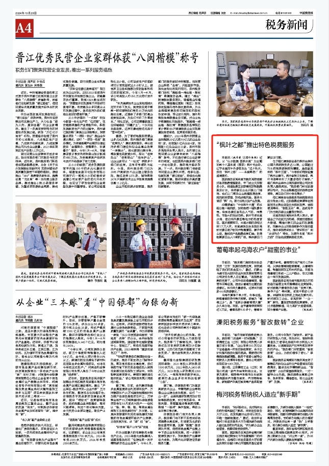 位于桓仁满族自治县的枫林谷森林公园内枫树种类多达13种,公园超过70%的地表被枫树所覆盖,是名副其实的“枫叶王国”。“今年我们特别设置了枫林谷集市,枫叶拿铁文创咖啡、枫叶书签等吸引了大量游客打卡拍照。”桓仁枫林谷森林公园旅游有限公司财务负责人赫英莉说,“税务部门针对旅游项目特点,为企业整理适用的税费政策清单,满足我们的个性化需求。”