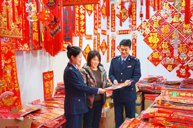 他们逐户对个体工商户进行对接问需,为商户送去“税惠政策福袋”,并了解其经营情况,一对一解答商户提出的疑难问题,以“税务蓝”助力“新年红”,让店铺生意更加红火。
