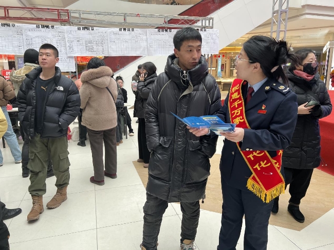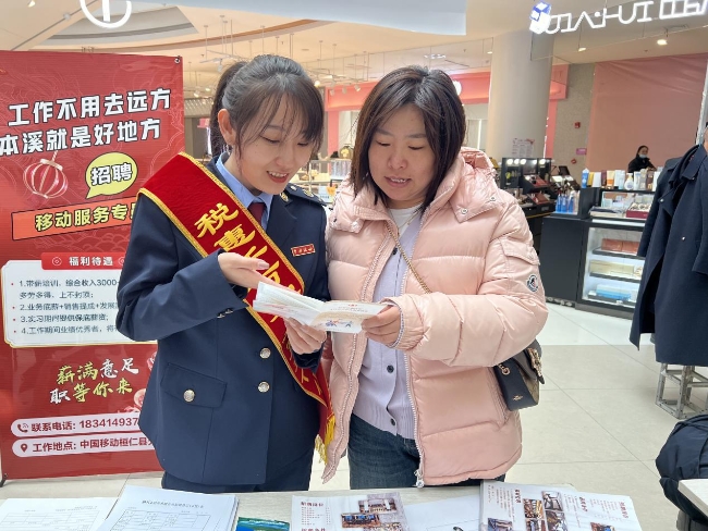 近日,国家税务总局桓仁满族自治县税务局组织“税小溪”志愿服务团队走进2024年“春暖辽沈 惠企护航”保用工促就业桓仁县春季招聘活动现场,向招聘企业和应聘者提供“一对一”税收政策咨询服务,为就业创业者保驾护航。