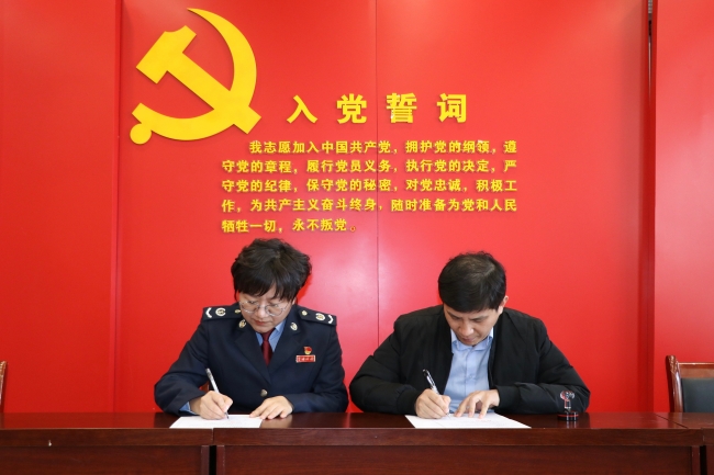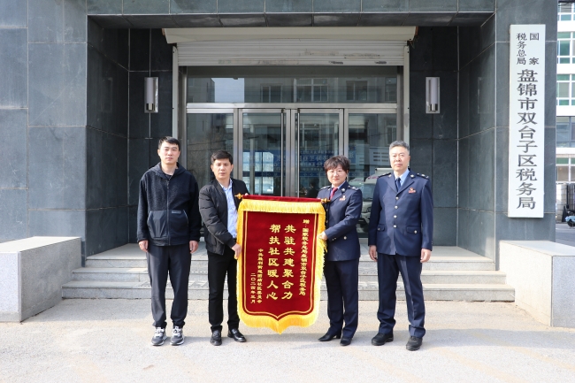 2024年3月26日,盘锦市双台子区团结社区书记王其强将一面印着“共驻共建聚合力 帮扶社区暖人心”的锦旗送到国家税务总局盘锦市双台子区税务局,感谢区税务局对团结社区一直以来的倾力帮助。区税务局党委书记、局长张迪男接受锦旗,并同团结社区书记共同签订了《共建协议书》。