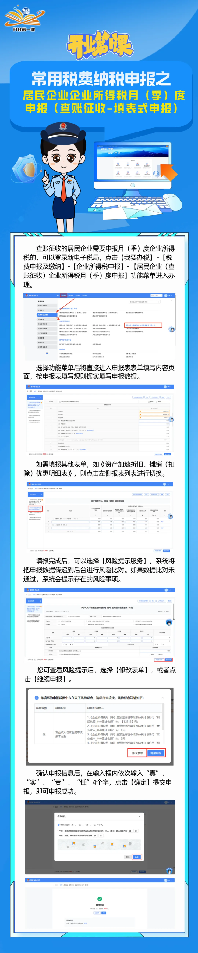 今天带你了解:常用税费纳税申报之居民企业企业所得税月(季)度申报(查账征收-填表式申报)。