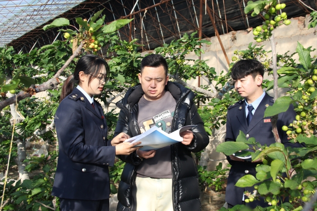 新春将至,年味渐浓。为助力辖区内特色农业产业发展,国家税务总局朝阳市龙城区税务局的税务干部深入朝阳市西大营子镇的鸿缘采摘园,开展“税务宣传进果园”活动,关注企业发展,为企业送上税费政策和节日祝福。