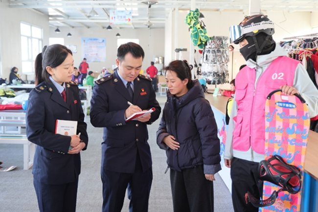 鞍山市局以服务冰雪经济为抓手,不断延伸服务触角,推动税费政策与产业需求有效对接,助力冰雪“热经济”在鞍山持续释放活力。图为税务干部走进企业“送政策、问需求、优服务”。