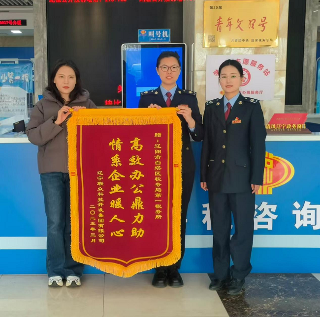“太感谢你们了,要不是你们帮忙,我都不知道该怎么办了。”近日,辽联(辽宁)服务外包有限公司的苏会计为白塔区税务局办税服务厅送来一面写着“高效办公鼎力助,情系企业暖人心”的锦旗。