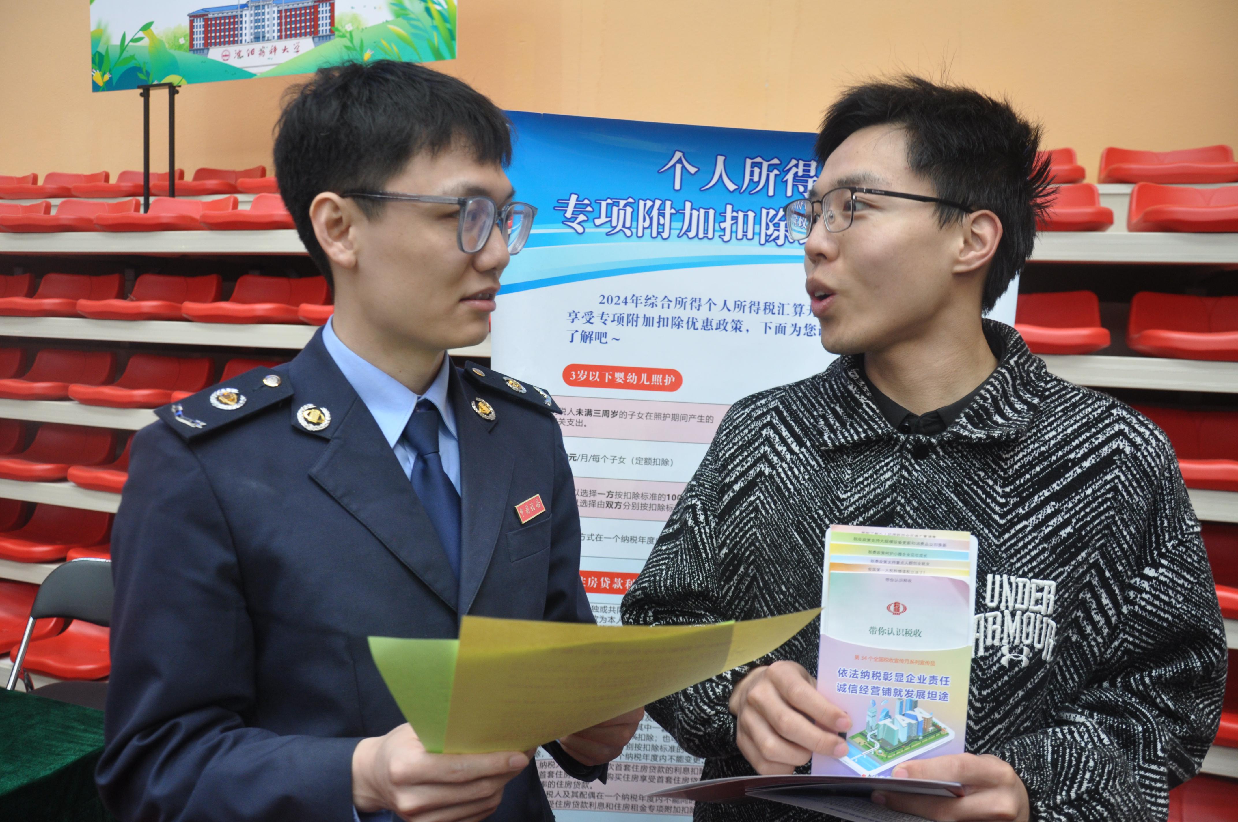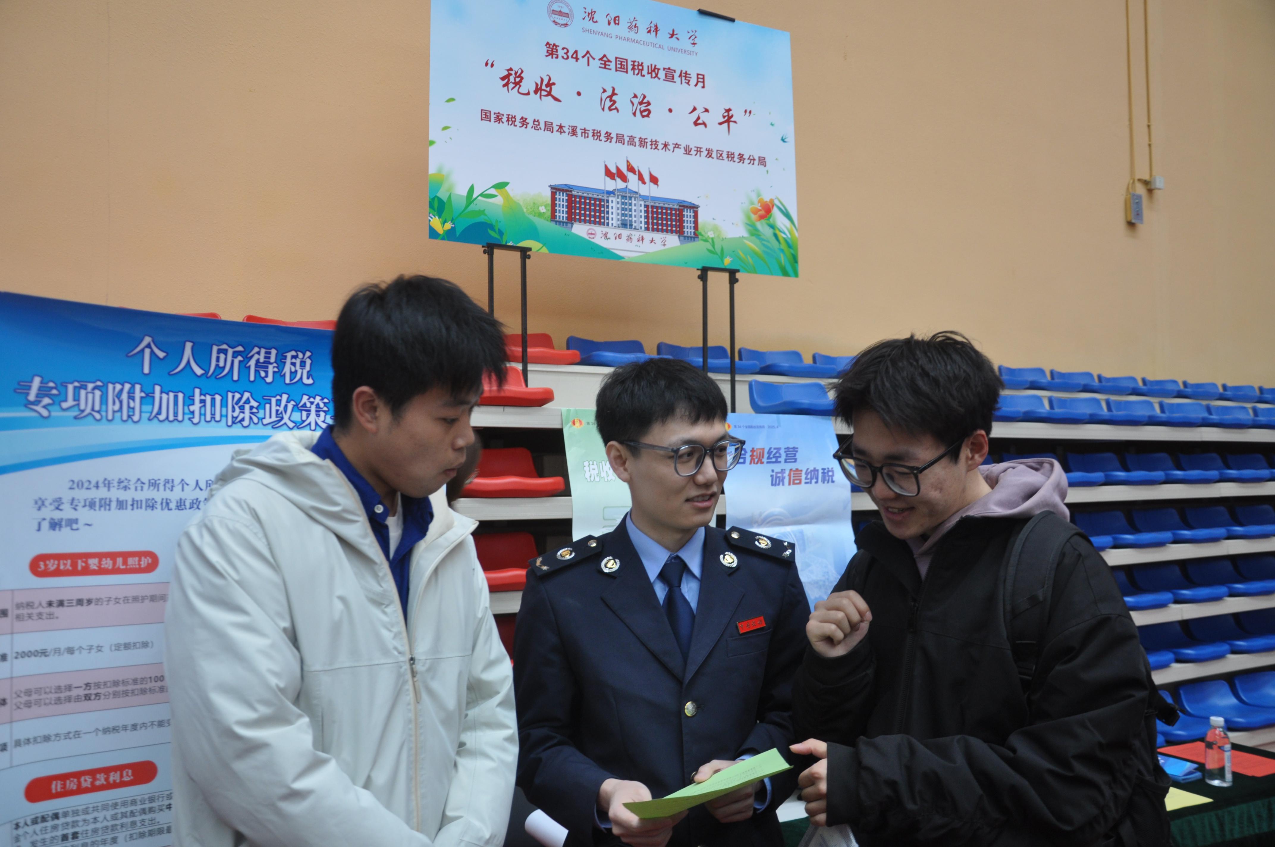 春满辽溪,万物竞发。第34个全国税收宣传月如约而至,4月2日,国家税务总局本溪市税务局税法宣传团队走进沈阳药科大学2025年春季双选会,以“税收·法治·公平”为主题,为即将踏入人生新征程的学子们送上一堂“青春必修课”,用税法的温度与力量,为青春梦想保驾护航。