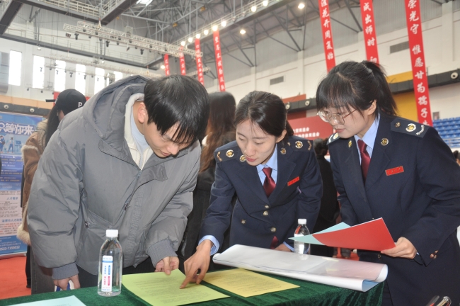 “同学们,你们的第一份工资如何享受个税专项附加扣除?”“创业大学生有哪些税收‘大礼包’?”在双选会特别设立的“税法加油站”前,税务青年干部化身“职场引路人”,用生动简洁的话语将晦涩的税法知识转化为“职场攻略”。毕业生们围在展板前,仔细聆听分局青年干部宣讲税法知识,在欢声笑语中解锁“人生纳税人”的新身份。