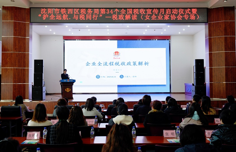 3月31日,国家税务总局沈阳市铁西区税务局紧扣“税收·法治·公平”主题,联合铁西区妇女联合会、铁西区女企业家协会,举行了铁西区税务局第34个全国税收宣传月启动仪式暨“护企远航·与税同行”--税政解读(女企业家协会专场)。