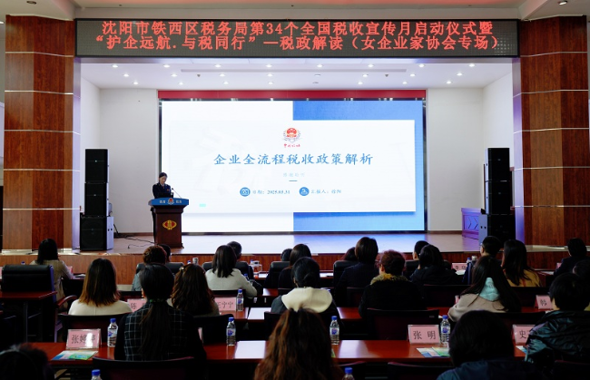 活动现场,区局党委书记、局长薛斯文、铁西区妇女联合会主席孙凤、女企业家协会企业代表苏冬梅先后致辞,区局为到场企业家发放了税收宣传月宣传手册和《辽宁省企业纳税合规管理工作指引》,并从企业的开立、开办、开票和生产经营四个方面开展了企业税收政策全流程税政解读。