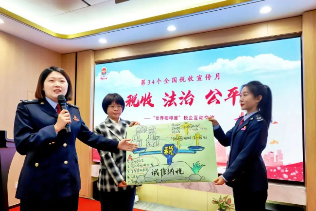 国家税务总局葫芦岛市税务局紧扣“税收 法治 公平”主题,创新举办税收宣传月启动仪式暨“世界咖啡屋”税企互动交流沙龙活动,来自不同行业的15个企业代表与税务干部混合编组,在四个自由讨论区围绕“数治赋能”“合规护航”“诚信纳税”“稽查执法”四大主题展开深度对话,有效推动了税企良性互动。