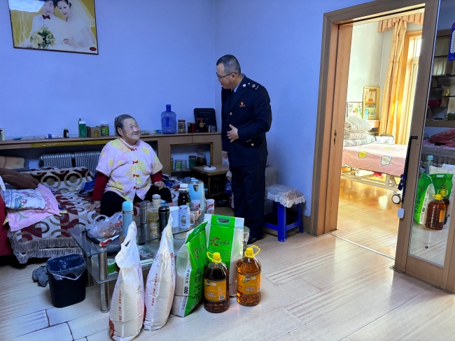 盘锦市税务局第一稽查局开展“重温雷锋事迹 传承榜样力量”主题活动。税务干部在社区志愿者陪同下走访空巢老人,送去米面油等生活物资。