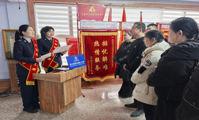 盘锦市税务局第一税务分局、辽滨沿海经济技术开发区税务局组织青年干部在办税服务厅开展“学雷锋文明办税”志愿服务,青年干部化身“办税引导员”“政策宣传员”和“便民服务员”,用专业高效的服务解决群众急难愁盼,在窗口一线诠释税务青年的“螺丝钉”精神。