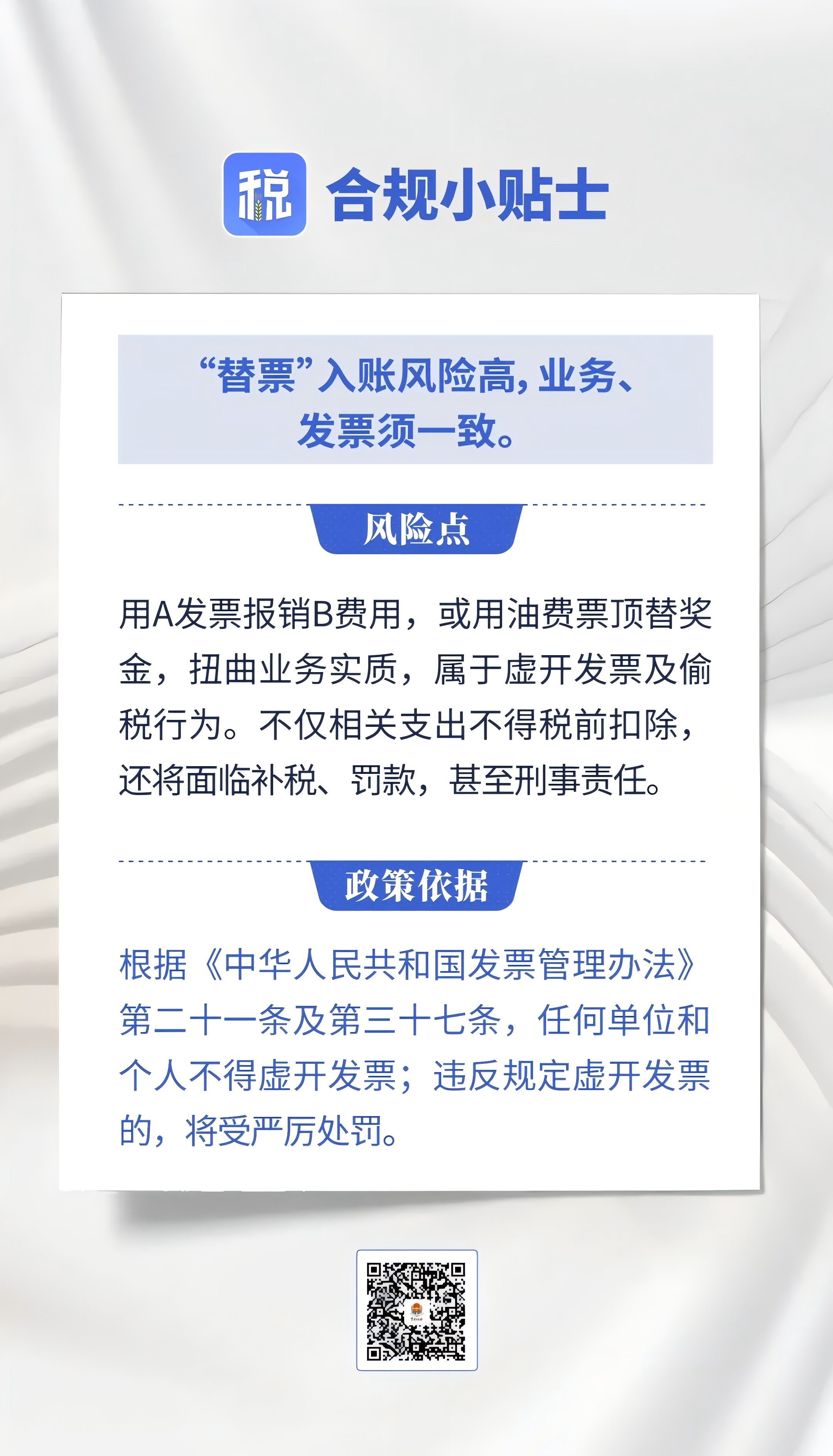 合规小贴士|“替票”入账风险高,业务、发票须一致