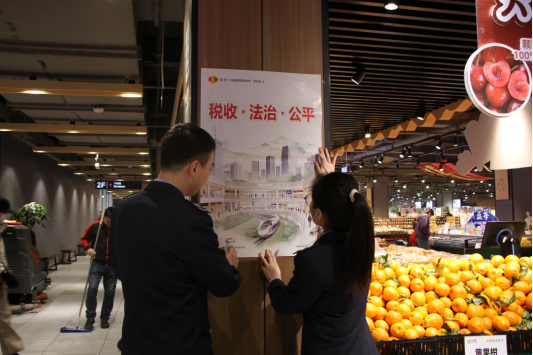 西市区税务局将宣传阵地选在群众流量大、贴近民生的超市,开展“税收宣传进商超”活动,打响税收宣传月“第一枪”。活动中,青年税务干部深入大家购时代广场,在人流密集区域张贴宣传海报、发放宣传资料,同时针对入驻商超的各类经营主体,细致讲解个人所得税汇算、发票开具等涉税热点问题,耐心引导各类经营主体依法纳税、合规经营,让税法知识走进经营一线。